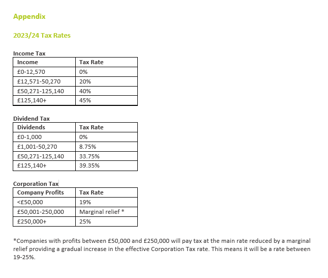 For 2023/24 the tax landscape is changing as from 1st April 2023 corporation tax rates will increase from 19% to up to 25% depending on your company profits (see Appendix). Taxes on personal income are changing too. This means that there are more choices around setting your optimum remuneration strategy, depending on your priorities and personal / company circumstances.